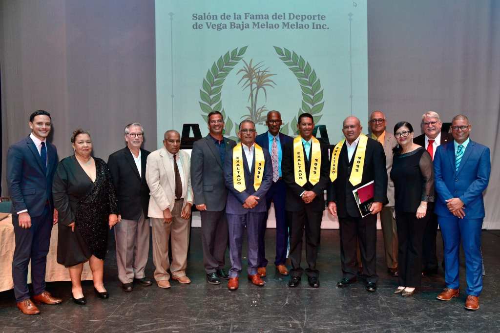 Directores del Salón de la Fama del Deporte Vega Baja Melao Melao junto a funcionarios municipales en la exaltación de diciembre de 2022