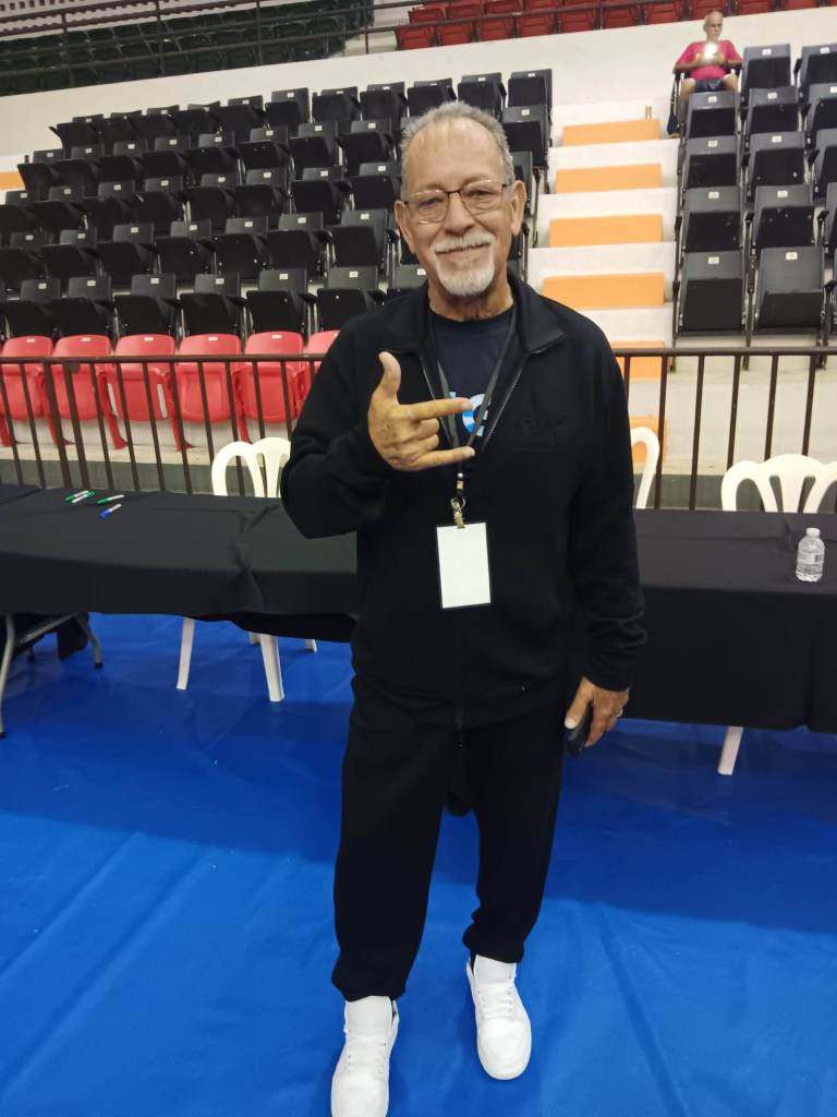 Jose Aníbal Laureano Colón (Chicky Starr), reconocida estrella del espectáculo de la Lucha Libre en Puerto Rico, posa para Jose Luis Maldonado (Luigi) en ocasión de una actividad benéfica en otro pueblo del este de Puerto Rico. Foto por Luigi.