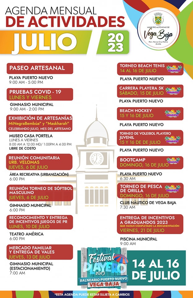 julio 2, 2023 diariovegabajenopuertorico.com Actividades del mes de julio del Gobierno Municipal de Vega Baja Comparte esto: Compartir en X (Se abre en una ventana nueva) X Comparte en Facebook (Se abre en una ventana nueva) Facebook Me gusta Cargando... Relacionado