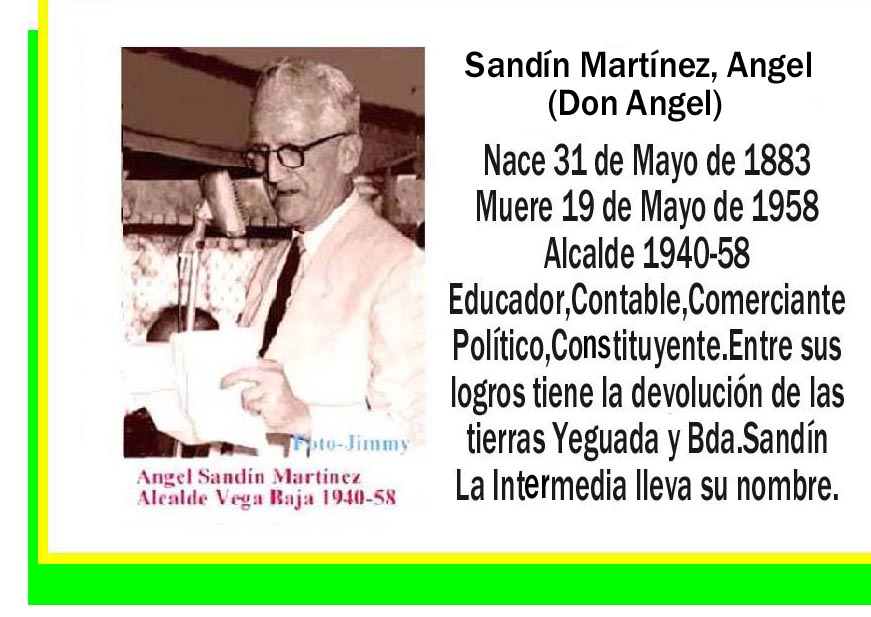 El viernes 28 y el sábado 29 de mayo de 1944 a las 7:30 de la noche se consideró el proyecto del alcalde Angel Sandín Martínez por la Asamblea Municipal de Vega Baja en la Sesión Especial de Presupuesto 1944-45. Estuvieron presentes nueve de once miembros, entre ellos, el Presidente, Manuel Arraiza, el Vicepresidente Casimiro Ramos, Francisco Jiménez, Benigno Náter, Avelina Torres, Antonio López, Hermenegilda de Santos, Dolores Vázquez y Santiago Narváez.