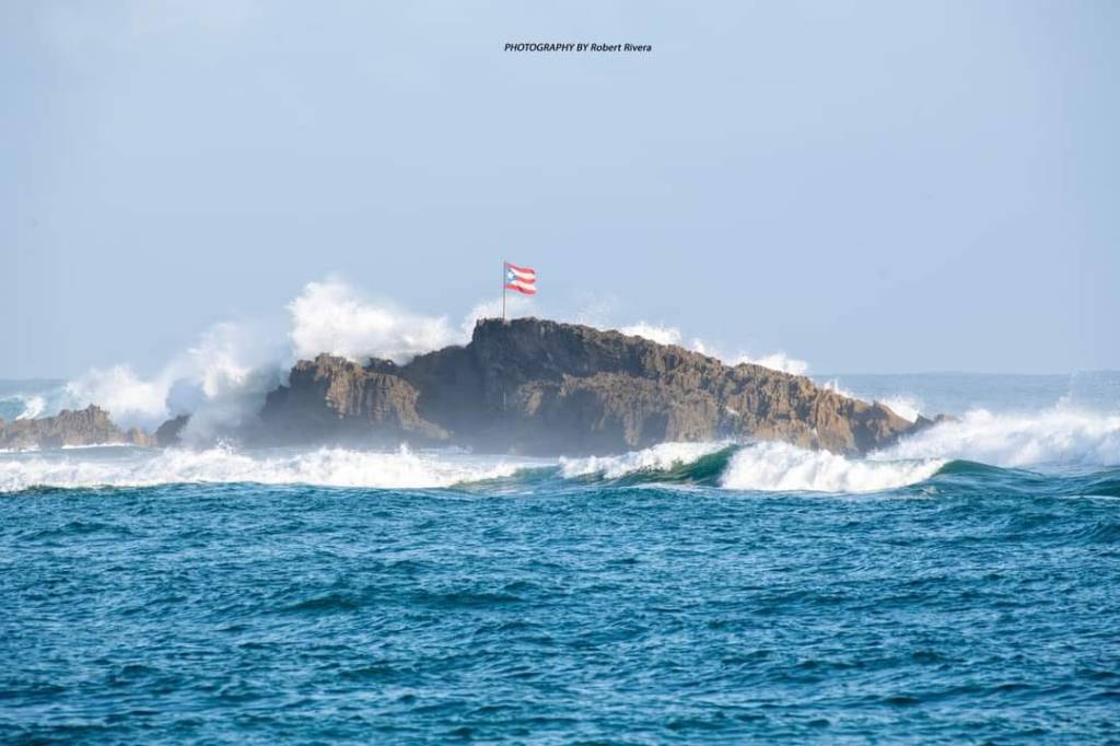 !Esta foto dice tanto! Además de captar la fuerza de la marejada ayer en Vega Baja , esa bandera de pie y resistiendo es el recordatorio de lo que hacemos como país cada día : resistir. !Gracias a Robert Rivera por la foto ! Por Maray Bonilla Martínez