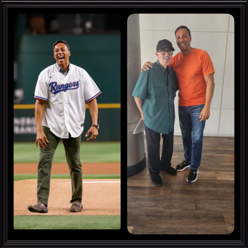 En ceremonia en el area del «plato-home plate»…el recibio el gran reconocimiento de quien fuese gerente general en tiempos de «Igor»…Tom Grieve y del otrora lanzador del equipo, Jose «Chevel» Guzman, nacido en Santa Isabel, Puerto Rico.