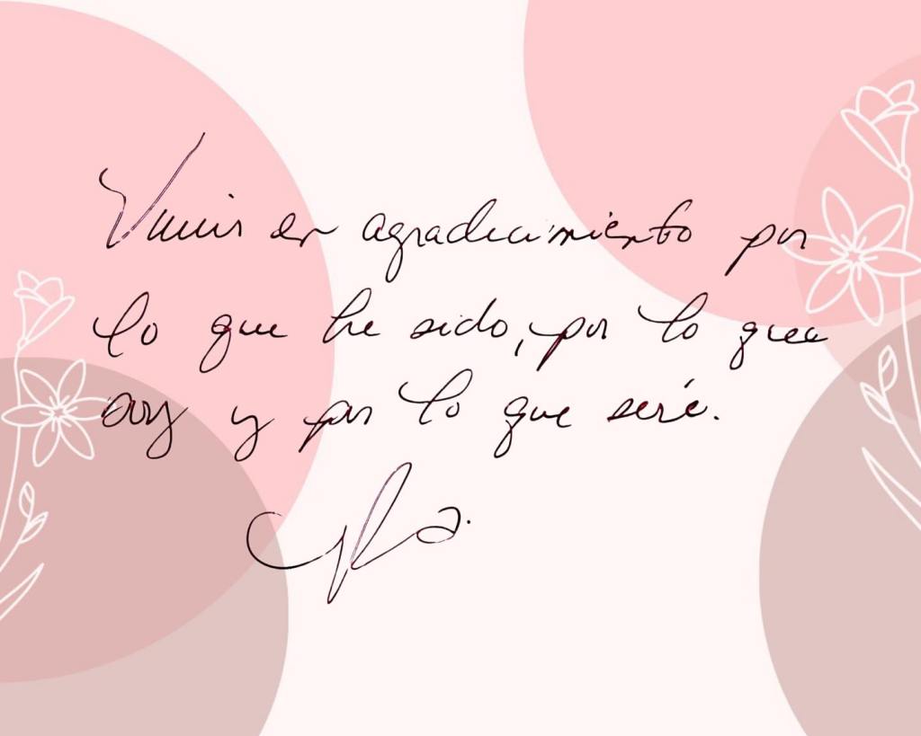 Hoy con mucha alegría puedo decir que continúo viviendo en agradecimiento, que me ha costado, pero en mi corazón solo puedo decir: ¡GRACIAS! Aquí estoy, lista para continuar y seguir aprendiendo del camino, llena de amor, de esperanza y agradeciendo por lo que he sido, por lo que soy y por lo que seré.