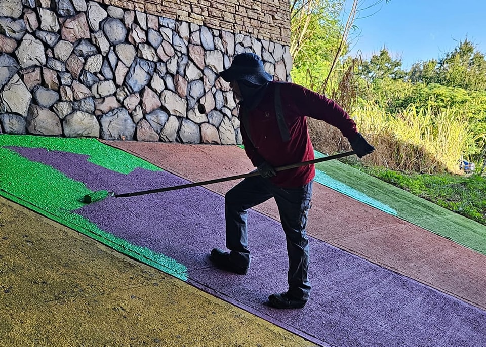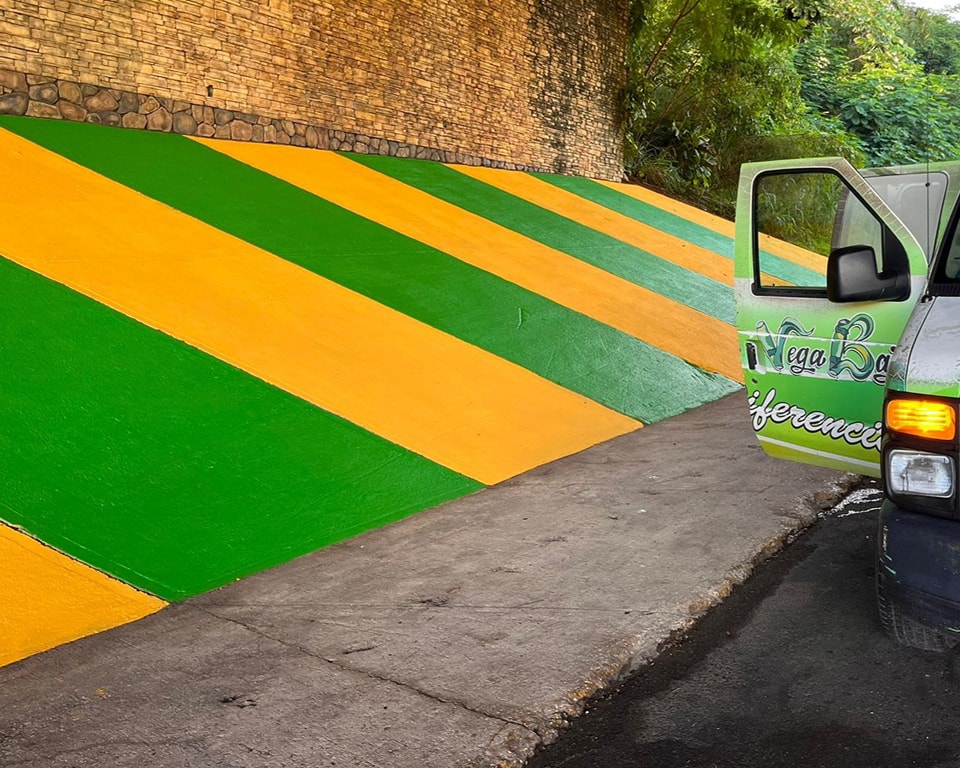 Después de varioos años con un pobre desempeño en la utilización de colores político-partidistas y colorines propios de países del tercer mundo, según lo llamó una vez un periodista del Noticiero de WAPA TV a los postes multicolores de Vega Baja, se han usado los colores oficiales para pintar el interior del puente del expreso 22 cerca del el área de la Comunidad Velez Ithier en Algarrobo.