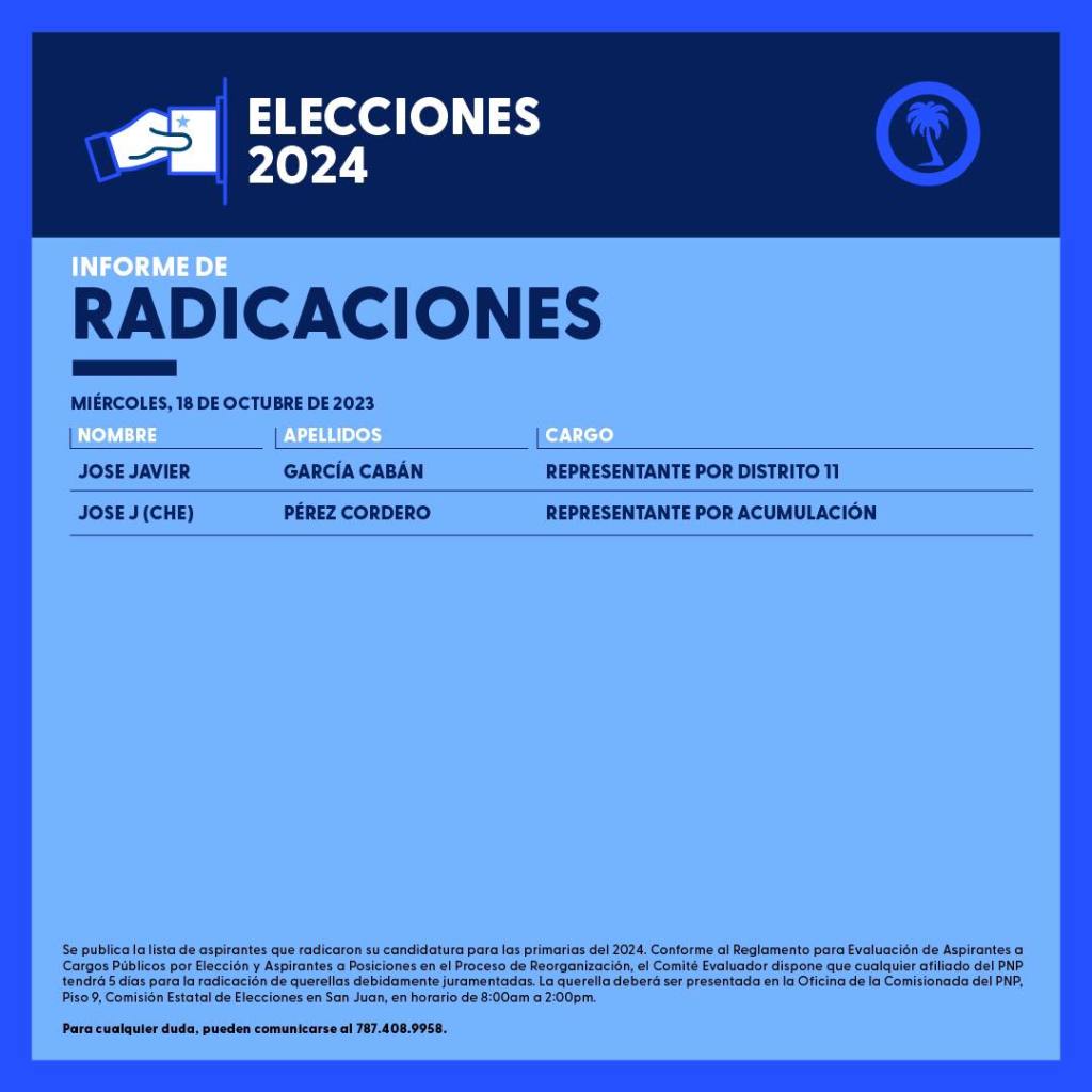 octubre 28, 2023 diariovegabajenopuertorico.com Actualidad Política: Candidatos que han radicado intención de postularse por el PNP en los distritos 11 y 12 José Javier García Cabán Comparte esto: Compartir en X (Se abre en una ventana nueva) X Comparte en Facebook (Se abre en una ventana nueva) Facebook Me gusta Cargando... Relacionado