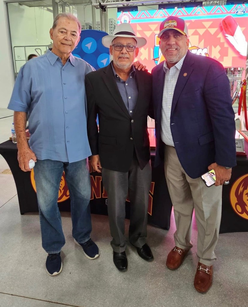 El vegabajeño Luis F, González, Presidente de la Asociación de Periodistas Deportivos de Puerto Rico en una conferencia de prensa de los Indios de Mayaguez, liga Roberto Clemente recientemente.