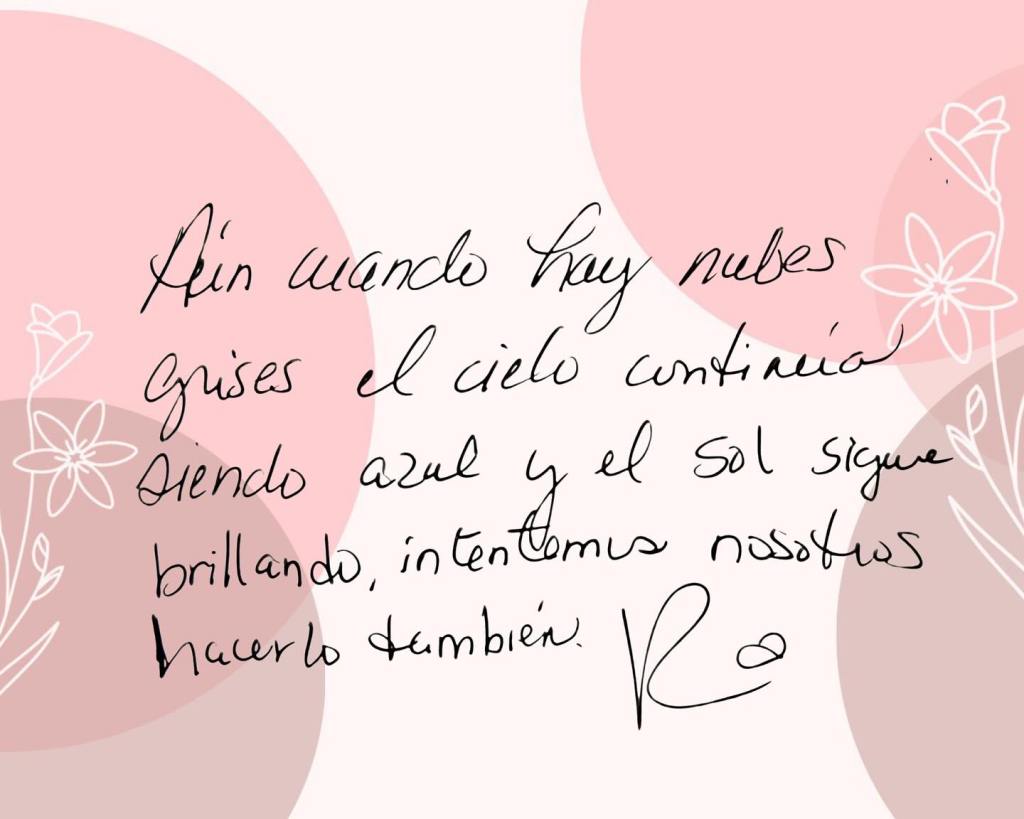 Somos más, mucho más fuertes, solo nos queda continuar, amar y luchar de la mejor manera posible por seguir adelante. Cuando veamos nubes grises en nuestro panorama, no olvidemos que ellas también forman paisajes hermosos y cuando ellas pasen, nuevamente veremos ese cielo azul maravilloso, acompañado de ese sol que no deja de brillar, al igual que el, nosotros tampoco.