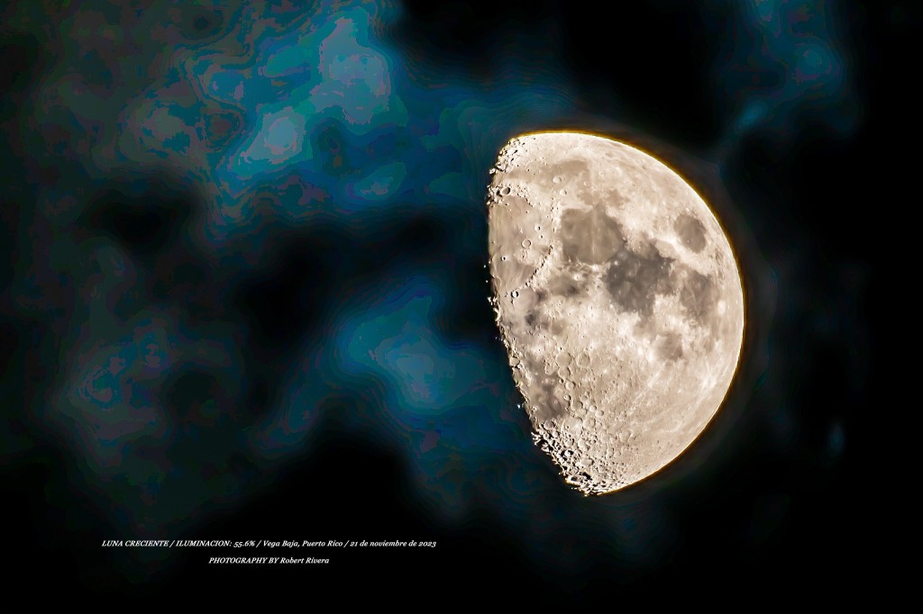 noviembre 22, 2023 diariovegabajenopuertorico.com Luna Creciente en Vega Baja, por Robert Rivera Luna Creciente con una iluminación de 55.6% vista desde Vega Baja Puerto Rico hoy martes, 21 de noviembre de 2023. Comparte esto: Compartir en X (Se abre en una ventana nueva) X Comparte en Facebook (Se abre en una ventana nueva) Facebook Me gusta Cargando... Relacionado