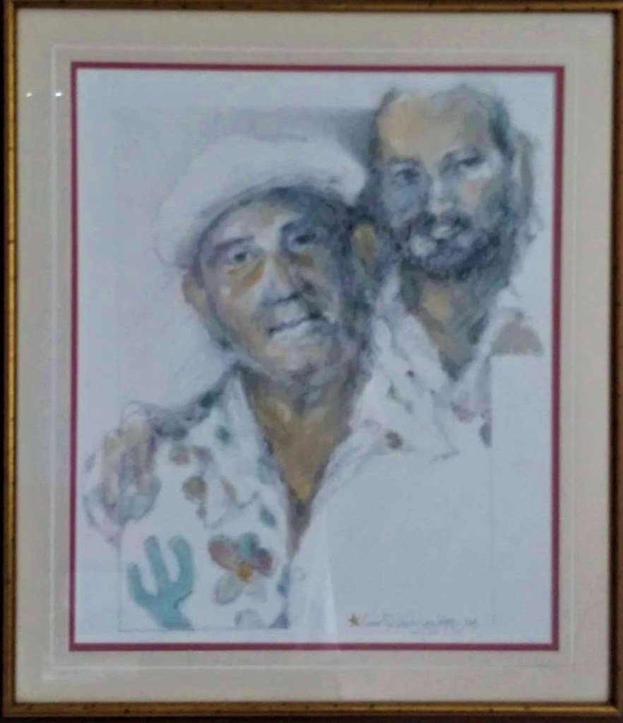 Este sencillo homenaje lo acompaño de una pintura de mi amigo Emérito Pérez, ya fallecido. a quien le encomendé una pintura de mi viejo y el me sorprendió al pintarme junto a él.