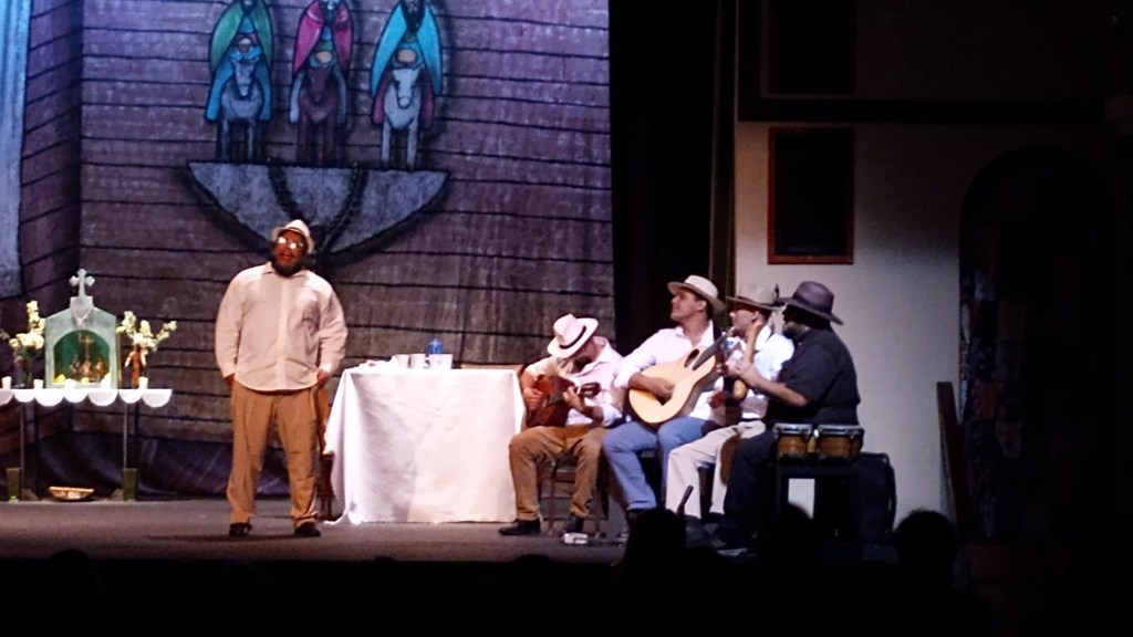 Anoche fuimos a ver la puesta en escena de la obra «un Velorio de Reyes» en el Teatro América. Nuevamente nos sorprende la facilidad conque se colocan tantos personajes a la misma vez, todos destacándose de alguna manera. Y si fueran todos adultos, uno entiende la sincronicidad y el orden, pero incluye a niños, jóvenes y personas de todas las edades.