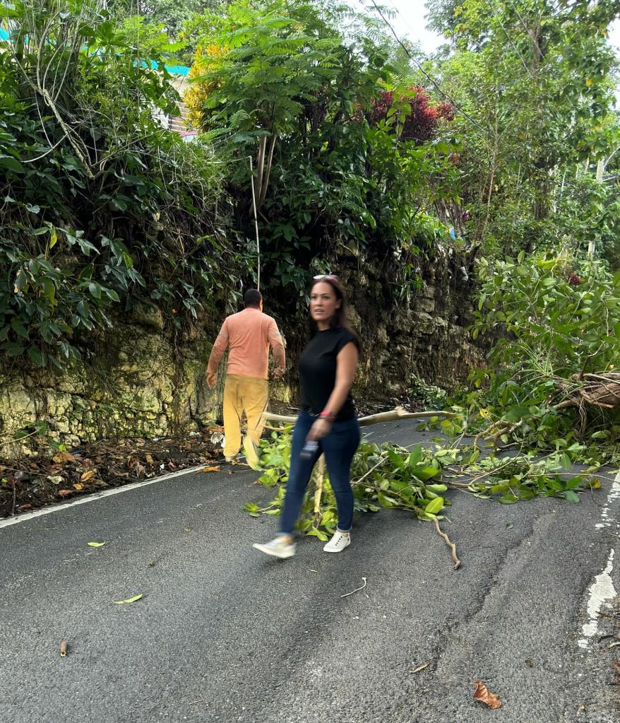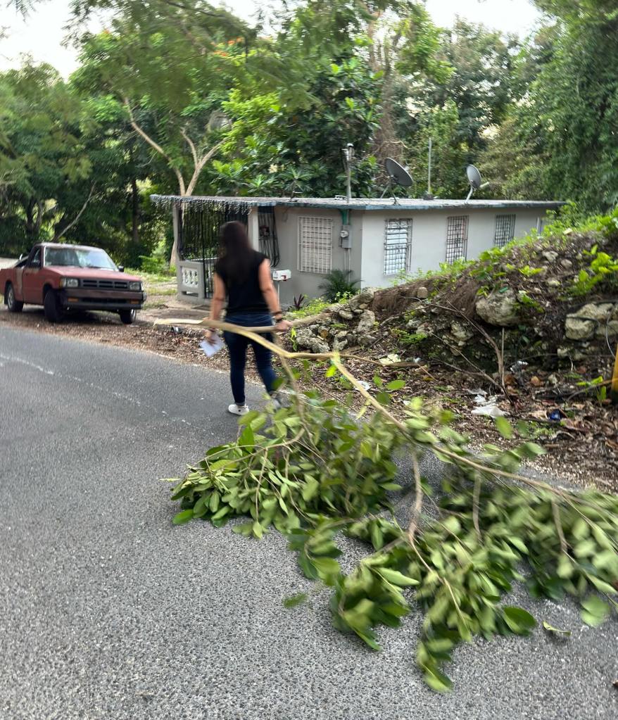 La candidata a alcaldesa por el Partido Popular Madeline Pichardo iba a inspeccionar el desastre del Mariposario y el Area Recreativa de El Trece y se encontró que la Carretera estaba obstruída por haberse caído un árbol. No lo pensó dos veces, se bajó de su vehículo y metió mano con las ramas caídas, ayudando así a que la vía fuera despejada. Algunos mandan y van, otros mandan, pero, no van. Ella aun no manda, pero va.