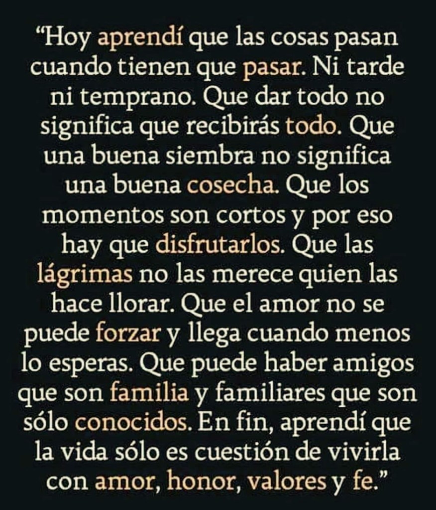 De momento la reflexión, posiblemente prestada, porque él firma pero no escribe mucho, nos refleja su estado de preocupación existencial. Lo negativo es que dice que hoy aprendió todo eso. Nirvana. Nunca es tarde, pero la vida hay que accionarla, no dejarla en lo que se pudo ser y hacer. El amor tiene que ser recíproco, el honor no puede ser comprado ni facilitado con recursos de otros, los valores tienen que definirse antes de mencionarse y aceptarse como propios. Y que sepa Marcos Cruz que hay dos tipos de fe, la mala que es contraria a la buena, y la buena que solo opera cuando hay un bien que no perjudica a otros.