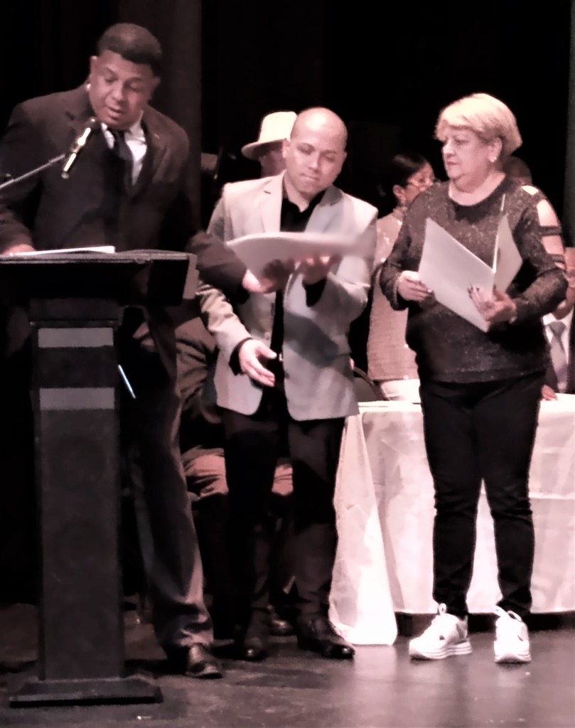 Sus acólitos de la mayoría popular de la Legislatura Municipal no estaban presentes, Se dice que para esta actividad no se les pagaría la dieta correspondiente porque no estaban reunidos en sesión sino en un acto civil voluntario. Para entregar las resoluciones de felicitación usuales, solo estaban presentes el Presidente y dos de tres miembros de la minoría legislativa, que se integraron en un trío después que el Presidente había comenzado a dirigirse al público.