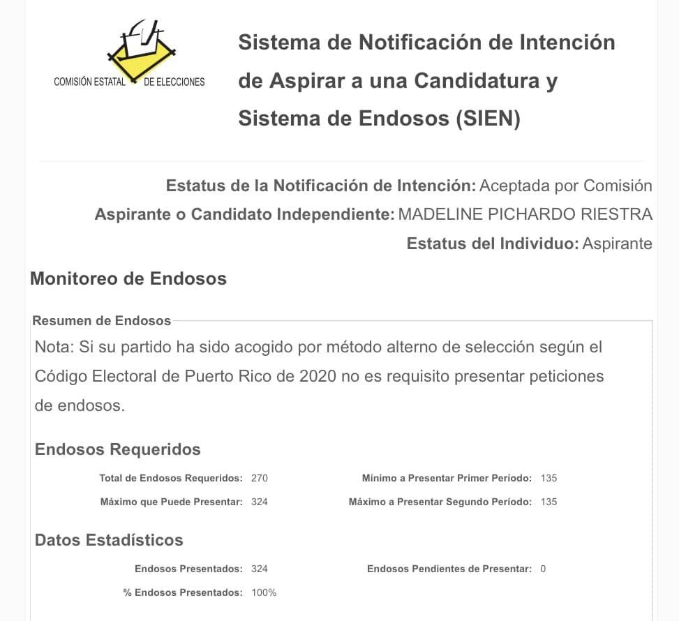 Madeline Pichardo Riestra no solo completó el 100% de los 270 endosos requeridos, sino que presentó el máximo de 324 que podía presentar, demostrando un respaldo impresionante de electores que la apoyan.
