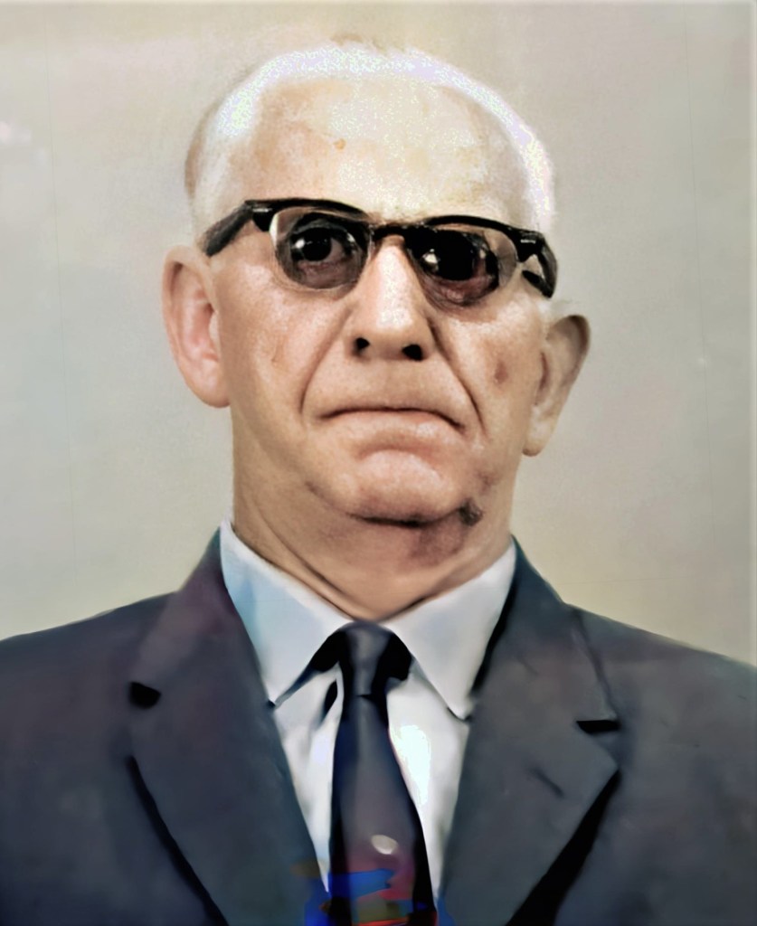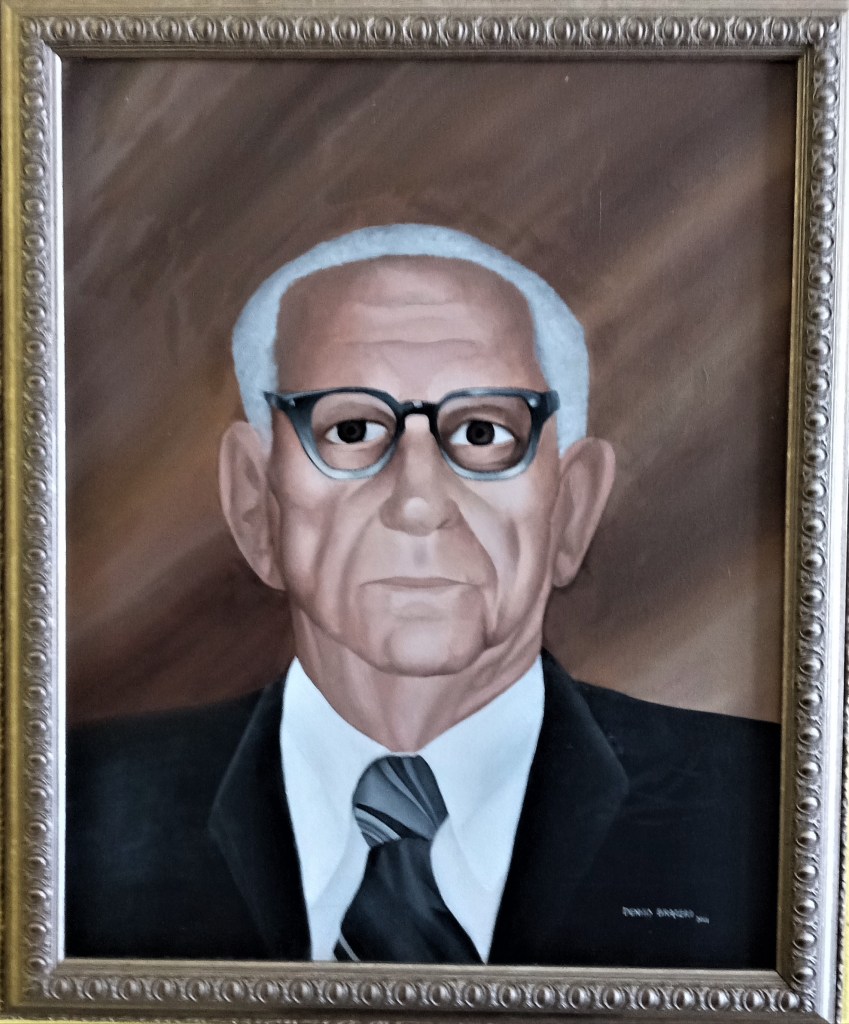 Esta pintura de Don Pablo Eguía, comerciante de Vega Baja y propietario del Teatro América, fue elaborada por Dennis Bracero después de su muerte en 1990. y está basada en un retrato que le tomó mi padre, Thomas Rosario Flores (Jimmy) en 1964 y que recientemente colorizamos y publicamos. EL mismo lleva la siguiente descripción de catálogo: FJR 1003759 Pablo Eguía 1964. FJR corresponde a Fototeca Jimmy Rosario, el archivo de imágenes que hemos estado trabajando desde hace una década.