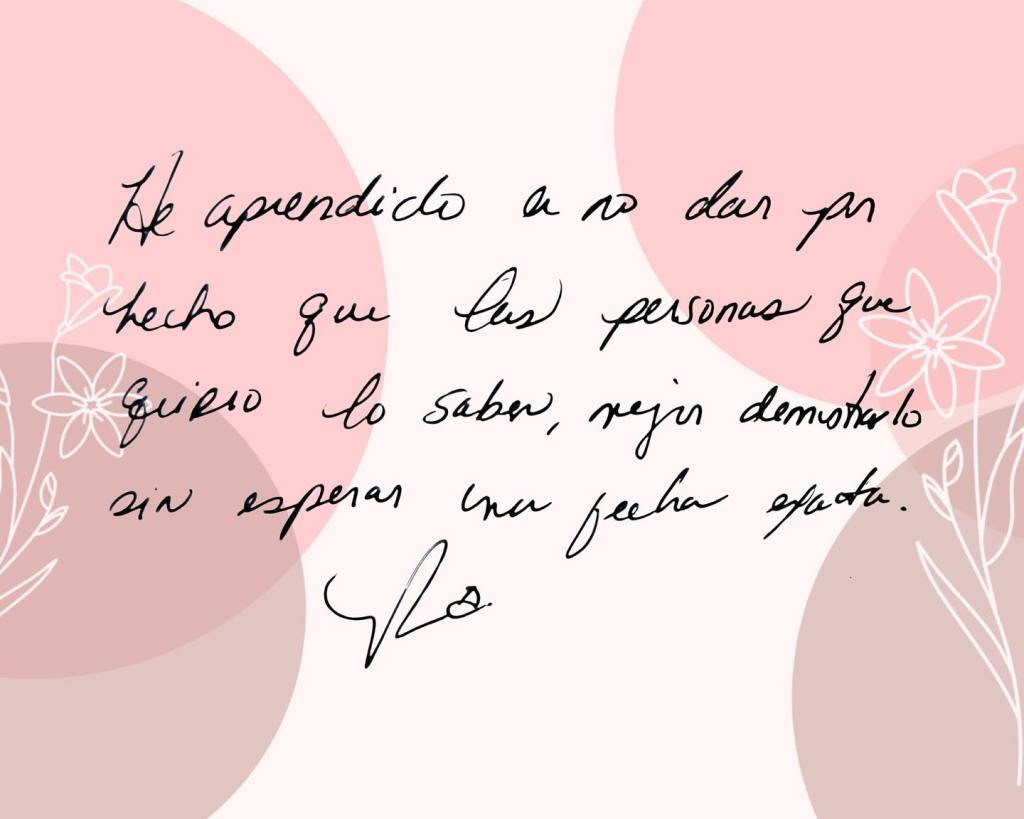 Cuando Carli fallece entendí que no podía dar por hecho que los demás sabían cuán importante son en mi vida, porque quizás ahorita puede ser muy tarde, porque quizás alguien necesita sentir ese cariño, ese amor, porque en el momento que nos tengamos que alejar ya sea físicamente o emocionalmente, tengamos recuerdos bonitos. Es por eso que los abrazos, los gestos, los detalles, son la orden del día para quienes quiero, sin día marcado, no sea que por esperar, se me haga tarde.