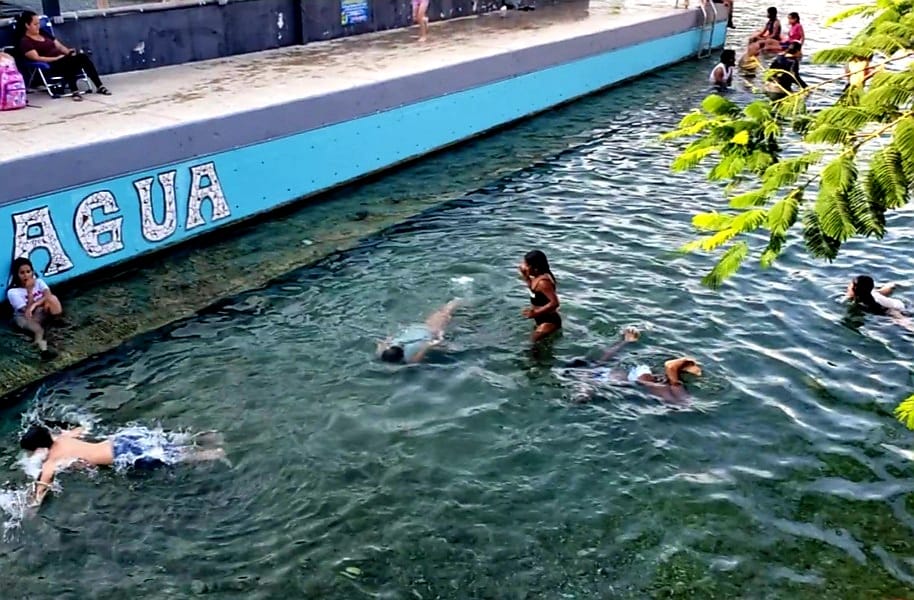 Al ser las aguas del manantial unas templadas ni frías ni calientes son del agrado a quienes entran al manantial de ése ojo de agua. ![]()
