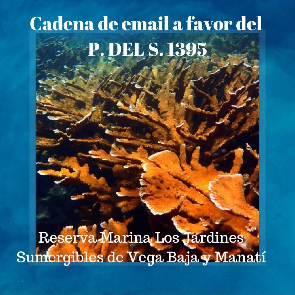 Mi nombre es _____________ residente del municipio de _________________. Apoyo la creación de La Reserva Marina Los Jardines Submarinos de Vega Baja y Manati, como se peticiona en el proyecto P. DEL S. 1395. Este proyecto fomenta la protección de nuestros recursos marinos/costeros que nos protegen, nos dan alimento y nos proveen espacio de crecimiento social y cultural para nuestra y futuras generaciones.