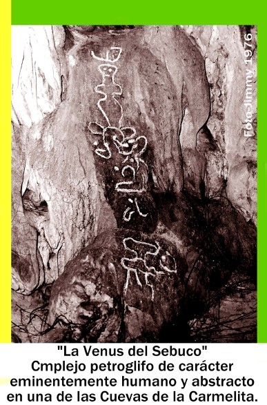 La Venus del Sebuco. Este petroglifo tallado en las paredes de una de las cuevas de Carmelita entre Vega Baja y Manatí se le da ese nombre por su silueta parecer la de una mujer con caderas prominentes, que se relacionó a Venus, la diosa del amor, la belleza y la fertilidad de la mitología antigua y que en varias culturas se repetía su existencia en el mundo espiritual.