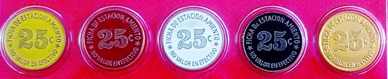 El propio Otilio, creó una colección que usaba en su propia joyería. En esta ocasión, mostramos una versión coloreada por el mismo Otilio de las monedas que se produjeron para el estacionamiento público. Sobre Otilio y otras de sus habilidades y coleccionismos excepcionales que ha desarrollado para la historia vegabajeña tenemos mucho que escribir, ya que él ha producido muchos First-day Cover de eventos de Vega Baja que son únicos en su clase y ha salvado parte de la historia del tren de Vega Baja. Eso son otros temas históricos, que habremos de reseñar oportunamente.