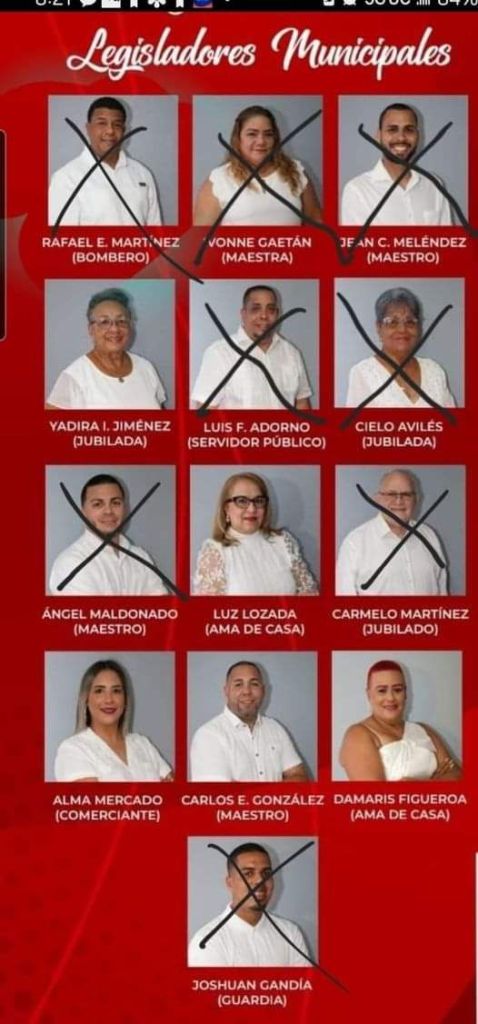 Los tachados de la papeleta son candidatos rechazados según su autor, no deben estar en la Legislatura Municipal porque apoyaron el proyecto de La Casona del Alcalde Marcos Cruz Molina. Se refiere a las primarias populares.