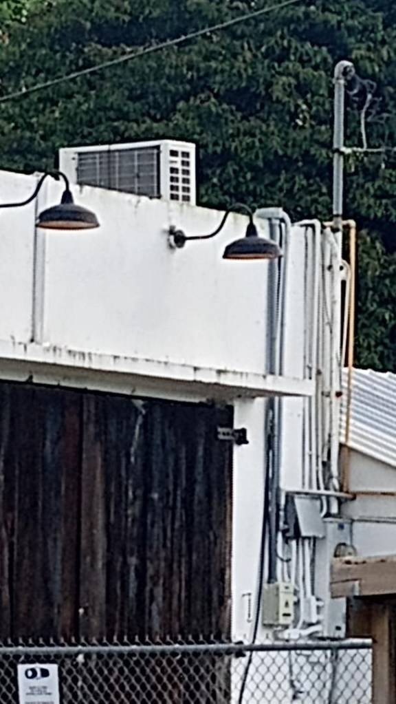 En una de los primeros edificios de la carretera 689, hay una estructura que pertenecía antes a la Autoridad de Tierras que en su exterior, tiene unas lámparas que parecen antiguas.
