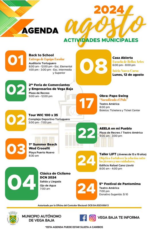 agosto 3, 2024 diariovegabajenopuertorico.com Agenda Municipal de Agosto 2024 Comparte esto: Compartir en X (Se abre en una ventana nueva) X Comparte en Facebook (Se abre en una ventana nueva) Facebook Me gusta Cargando... Relacionado
