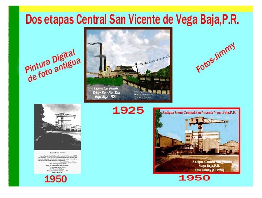«Ya para 1873 asoma en Vega Baja su chimenea la Central San Vicente como señal de que a la hacienda le toca su hora. Y con ello (escribe Gervasio L. García) el tránsito de la hacienda a plantación, proceso que cambió en las décadas siguientesla vida entera en la mayor parte de los trabajadores de la tierra y que culminó con la instalación de las gigantes centrales norteamericanas después de la invasión de 1898», , El Derribo de las Murallas por Rubén Dávila Santiago.