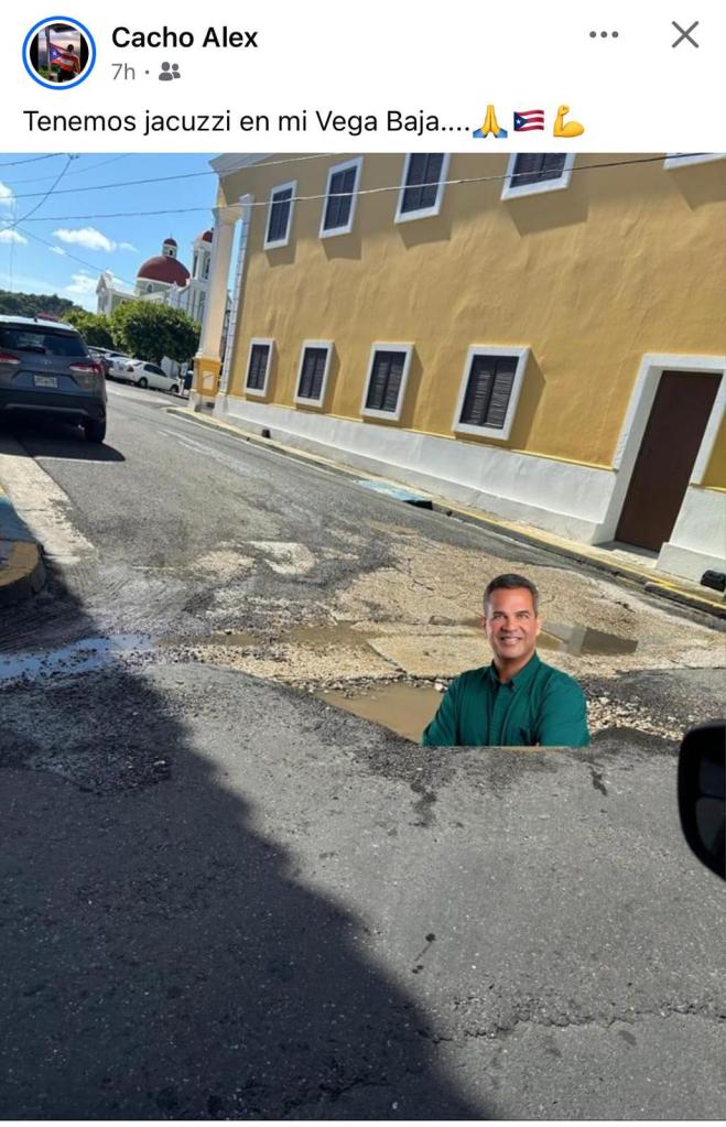 Tal parece que la preocupación de los vegabajeños por su pueblo no los deja dormir en estas noches calurosas donde a veces o siempre se va la energía eléctrica y los pone creativos, pues de madrugada nuestra redacción recibió esta aportación de Alex Cacho sobre una reciente ingeniosa obra del alcalde Marcos Cruz en el casco del pueblo para el próximo cuatrenio, que es la conversión experimental de los rotos existentes de las calles en jacuzzis.