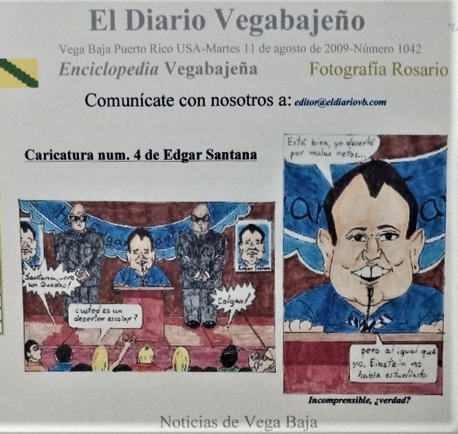 No solo lo combatía en El Diario Vegabajeño con ataques virulentos, irónicos y directos a su desempeño, sino que comisionó a un artista para que ilustrara unas caricaturas con circunstancias de la vida real sobre el alcalde Edgar Santana, en las que él redactaba la parte escrita de los parlamentos.