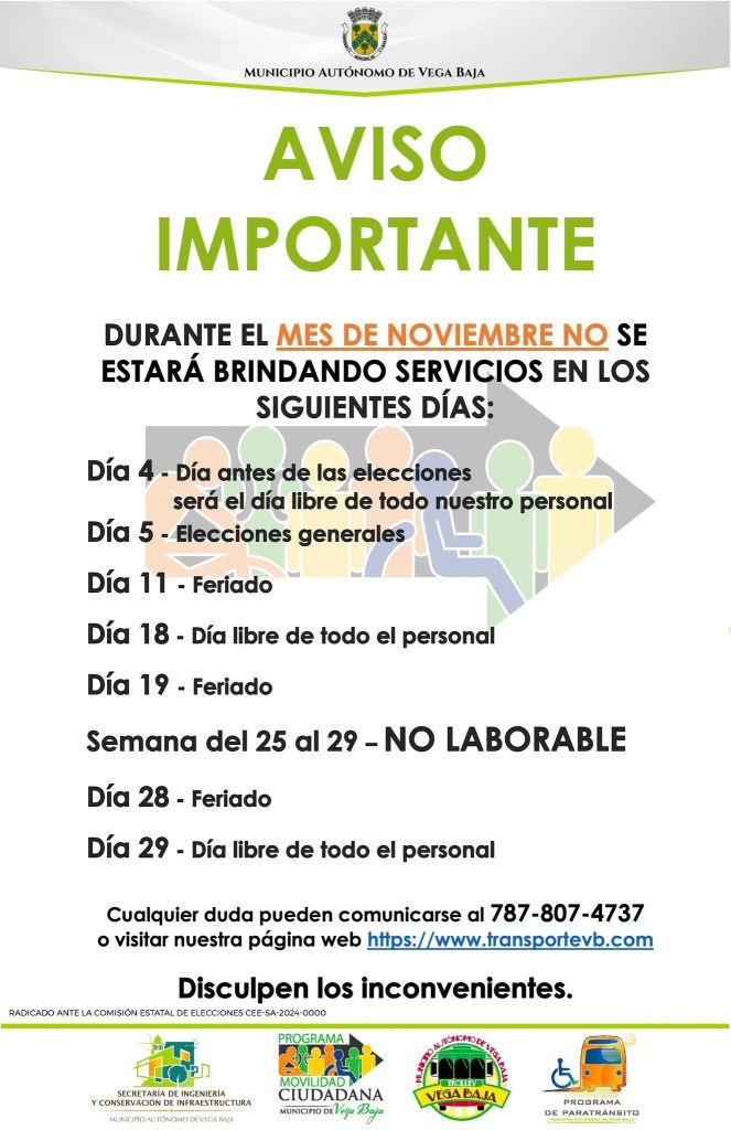 noviembre 4, 2024 diariovegabajenopuertorico.com Luego de las elecciones, el Gobierno Municipal anuncia que no va a trabajar el 50% de los días laborables, de 20, solo 10 Comparte esto: Compartir en X (Se abre en una ventana nueva) X Comparte en Facebook (Se abre en una ventana nueva) Facebook Me gusta Cargando... Relacionado