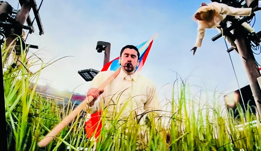 El boricua llegó al Levi’s Stadium de Santa Clara, California, y allí abrió con primeros acordes desde un cañaveral, rodeado de trabajadores de la caña, tal y como era en el Vega Baja y en el Puerto Rico de principios de siglo pasado.